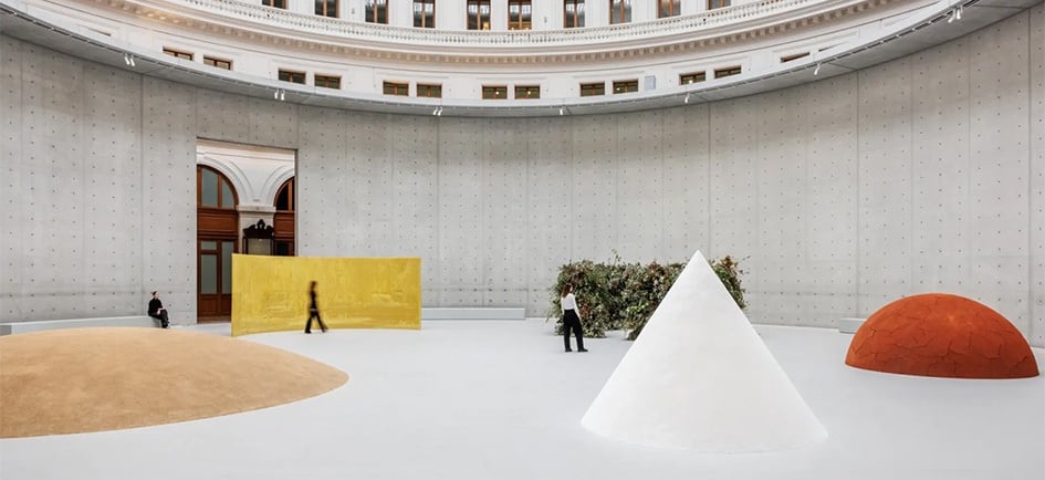 En la Bourse de Commerce, la exposición adquiere una dimensión particular. El edificio una antigua bolsa de cereales del siglo XIX fue transformado por Tadao Ando en un templo contemporáneo del arte: un cilindro de concreto puro que se erige bajo la cúpula original, símbolo del diálogo entre historia y modernidad.
