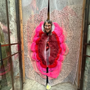En la sección de proyectos invitados, el énfasis se desplaza hacia la materialidad y el gesto íntimo. Entre pinturas densamente texturizadas y propuestas abstractas, una puerta cubierta por cortinas con forma de vagina introduce un umbral simbólico: atravesar esa entrada implica aceptar una experiencia corporal y política. Dentro de ese espacio se presenta la obra en cerámica de Andrea Echeverri, de la mano de Salón Comunal (Bogotá), que participa por primera vez en las ferias de arte de la temporada en la Ciudad de México.